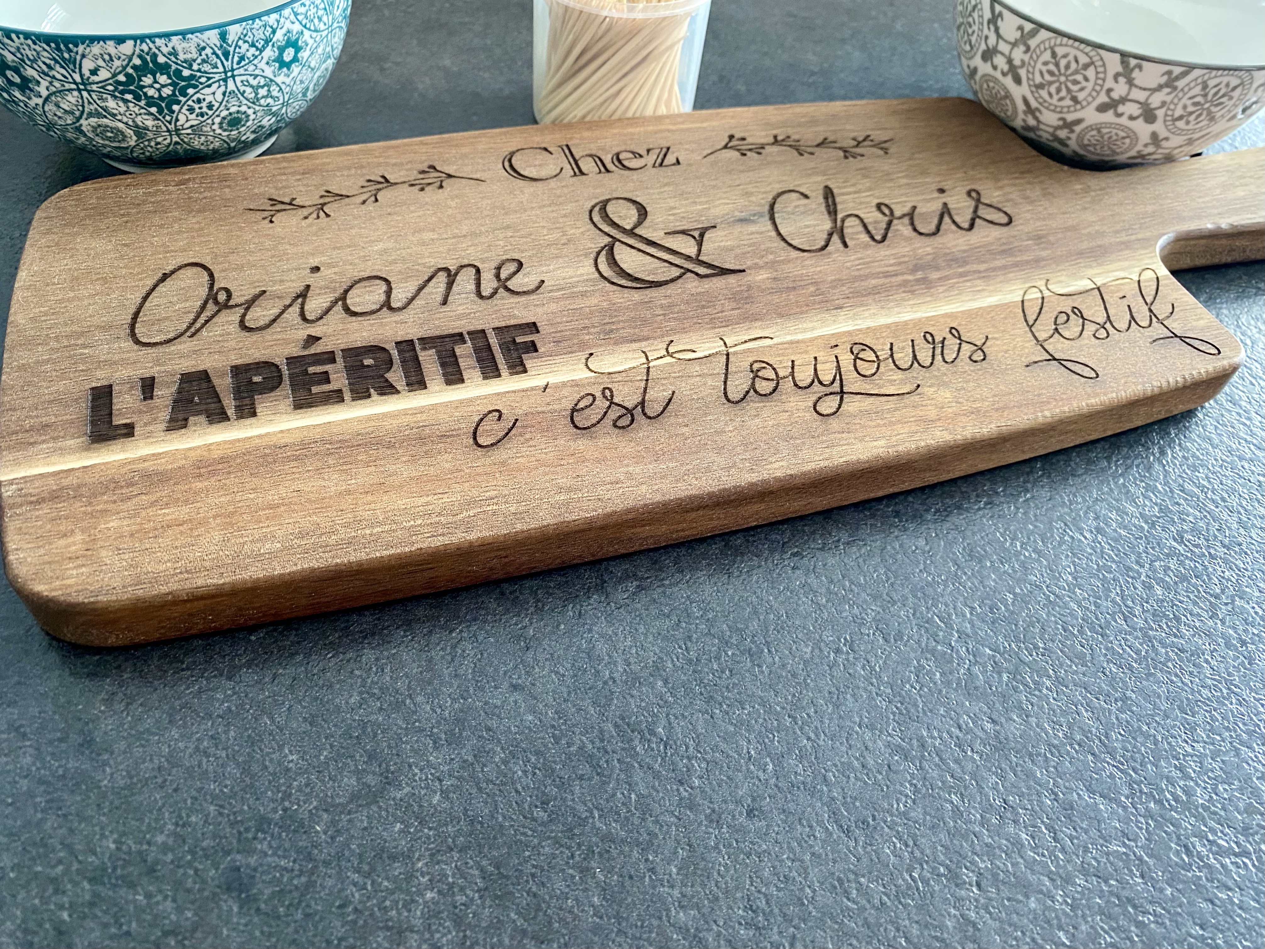 Une planche élégante et pratique, parfaite pour vos apéritifs ou comme cadeau unique et raffiné.