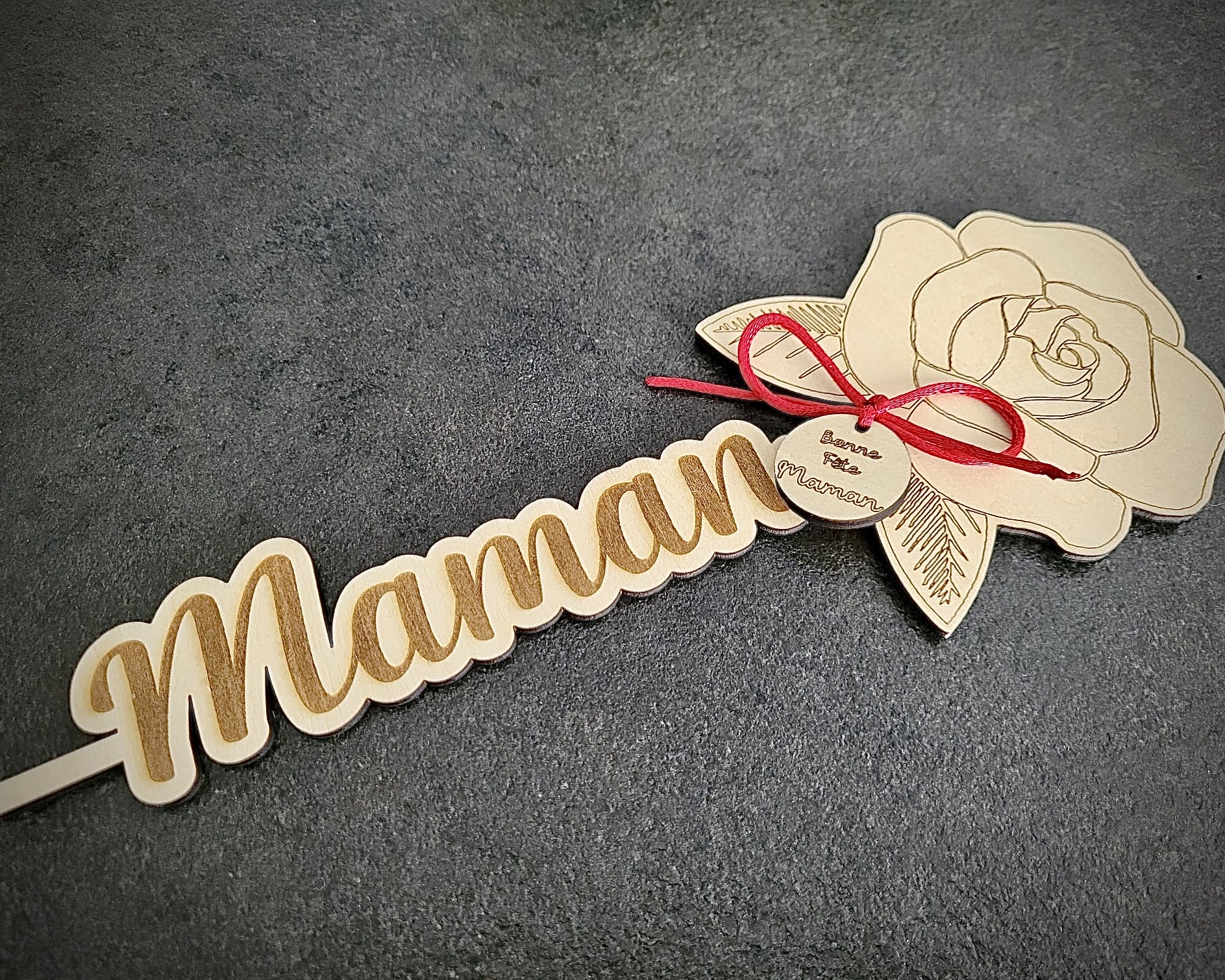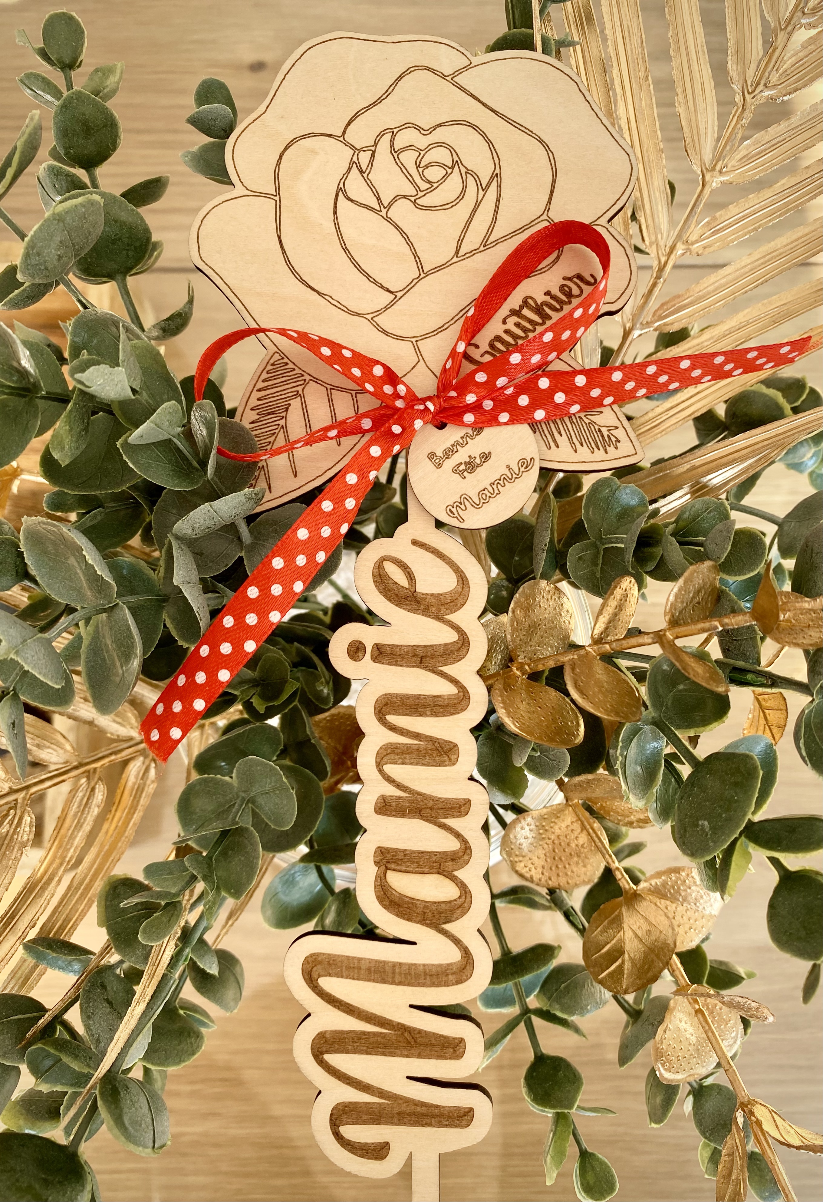 - Message personnalisé dans le rond en bois